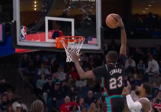 次节回来,乔治迎着防守强投三分命中后再造犯规,恩比德干拔跳投命中后又进三分,两人连拿10分,麦凯恩持球反击上篮再打进,76人从落后两位数完成反超。科沃德空切小垫步直接起飞完成双手滑翔暴扣,恩比德一脸震惊,随后点飞兰代尔,自抛自扣可惜扣飞,确实很有喜剧感。阿尔达马连中两记三分,马克西立马三分两连击回应,两队打得难分难解。马克西中场前投进拉杆高难度三分,半场战罢,76人72-72战平灰熊。